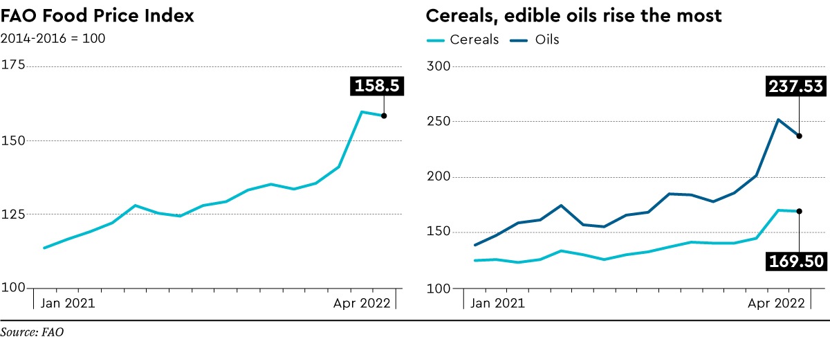 World food commodity prices reached their highest levels ever in March as war in the Black Sea region spread shocks through markets for staple grains and vegetable oils