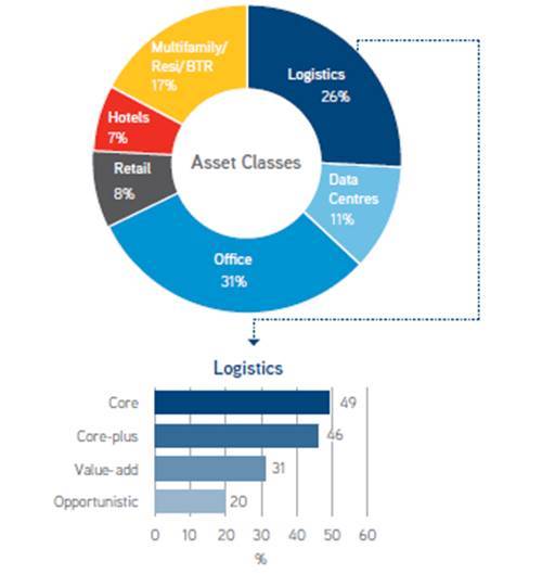 # Logistics and residential sectors are thriving. Both sectors were among investors’ top three choices across all regions. Intense demand for these assets will require investors to broaden their geographic focus and build portfolios through joint venture platforms and local partnerships.
