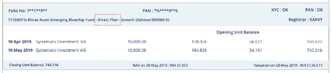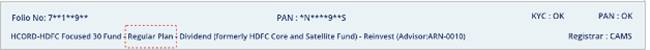 Consolidated Account Statement gives you a complete summary of mutual funds that you have invested in till date. You can download your CAS online and carry out the following checks to find out if you invested in a Direct or Regular Mutual Fund.