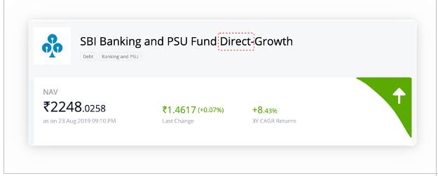 4. Direct funds have the word “Direct” in the scheme name. If you are investing through an online platform, you can easily check this. Some portals can use the abbreviation “Dir” to denote Direct Mutual Funds. If there is no mention of these words or there are words like “Regular” or “Reg”, then you are probably investing in a Regular Mutual Fund.