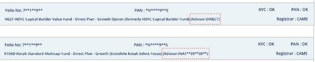 9. In the same Advisor field if you find values like: Direct or 0000000000 or INA100009859, then it is a Direct Mutual Fund.