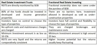 Both Fractional Ownership and REITs allow investors to procure premium commercial properties and gain monetary benefits generated by monthly rental income, therefore helping them to secure the long-term wealth. However, they operate differently.