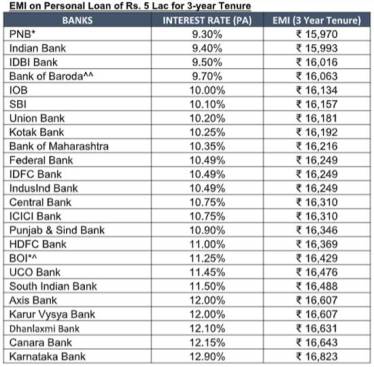 The table below compares the latest interest rates of more than 20 banks and EMIs for 5 lakh loans for 3 years. You can check and decide basis your requirements.
