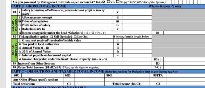 Step 5 – In Part C, fill in details of your chapter VI deductions like 80C, 80D etc. It will appear in C1