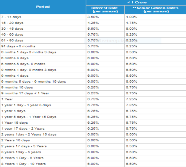 SBI Fixed Deposits (All Figures In % Per Annum)