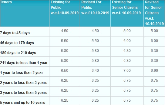 The interest rates on fixed deposits (FDs) have been reduced by the State Bank of India (SBI). The new rates of interest on SBI FDs will be applicable effective October 10, 2019. Importantly, After the recent repo rate cut by the RBI, the interest rate scenario in the country continues its downtrend. RBI has signaled more such rate cuts in future if conditions are in favour.