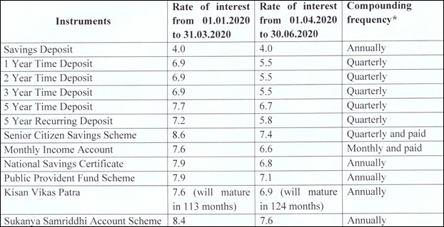The interest rate on PPF has been reduced from 7.9 per cent to 7.1 per cent per annum, a reduction of 80 basis points. For the Senior Citizen Savings Scheme, the interest rate has been cut from 8.6 per cent per annum to 7.4 per cent per annum. In the case of 1-year time deposit, the reduction is 1.4 per cent as the rate has been cut from 6.9 per cent to 5.5 per cent.