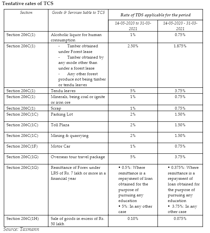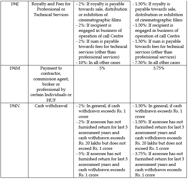 The reduced TDS and TCS rates will be valid until 31st March 2021. The government said Rs 50,000 crore of liquidity will be introduced by reducing the TDS and TCS rates for certain payments by non-individuals.