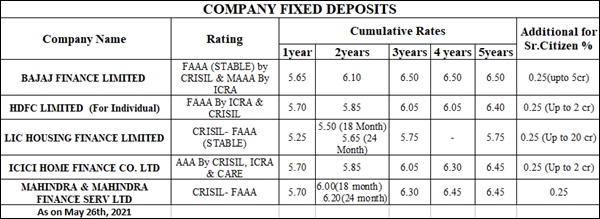 It is better to invest in company fixed deposits that carry AAA ratings denoting high safety for capital invested and interest earnings. Still, the ratings may change over time and hence relying entirely on them may not be the right approach. “Since most of the NBFC and HFCs offering Fixed Deposits carry high Rating such as AAA, stable financials over the past few decades and strong Management to look after, hence can be considered it as a safe option,” adds Mittal.