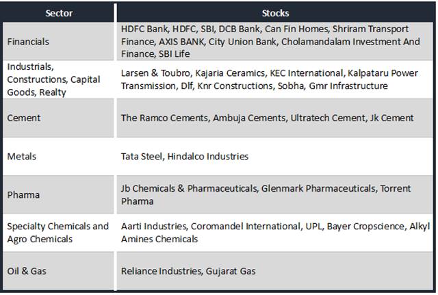 We believe the Indian economy has bottomed out and going forward the recovery would be backed by the financials doing extremely well. PSU banks are expected to do extremely well as the overhang of the NPA (Non-Performing Asset) has finally subsided, the banks are expected to see healthy recovery through the NCLT framework and the consolidation of several PSU banks is good for the industry. One can also look for larger NBFCs with superior pedigrees as these are also expected to do extremely well as they have been able to keep their NIM’s intact and with less competition around they have more space to grow and expand their foot print.