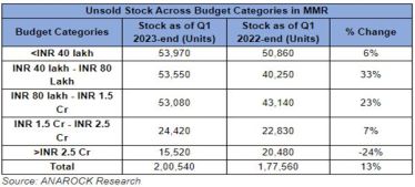 MMR – Unsold Stock Across Budget Segments