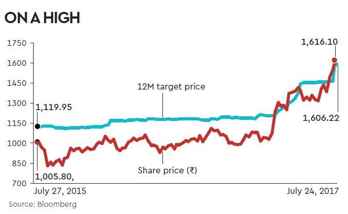 Shares of Reliance Industries (RIL) on Monday ended at a new lifetime high of Rs 1,616.10 as investors went on a buying spree over an upbeat outlook on its core business and telecom venture. The RIL stock gained as much as 2.4% on the BSE before ending the session at Rs 1,616.10, up 1.9%. The shares had earlier closed at a high of Rs 1,608.15 on January 14, 2008. On an intraday basis, the stock was just Rs 1.25 shy of its earlier high of Rs 1,626.05 — a level it had hit over nine-and-half-years ago. The company, which added Rs 1.75 lakh crore to investors’ kitty in 2017 so far, has gained 49.6%, the best-performing stock in the Sensex. The benchmark Sensex has gained 21.1% during the same period. As on Monday, the company’s market capitalisation stood at Rs 5.3 lakh crore —nearly a tenth of the Sensex’s market value of Rs 55.7 lakh crore. After hitting a peak in 2008, the RIL stock lost its momentum and plunged more than 68% through nine months to October 2008. Nevertheless, it has made a three-fold rise since then. The company’s earnings for the April-June quarter in 2017 surpassed analysts’ expectations.