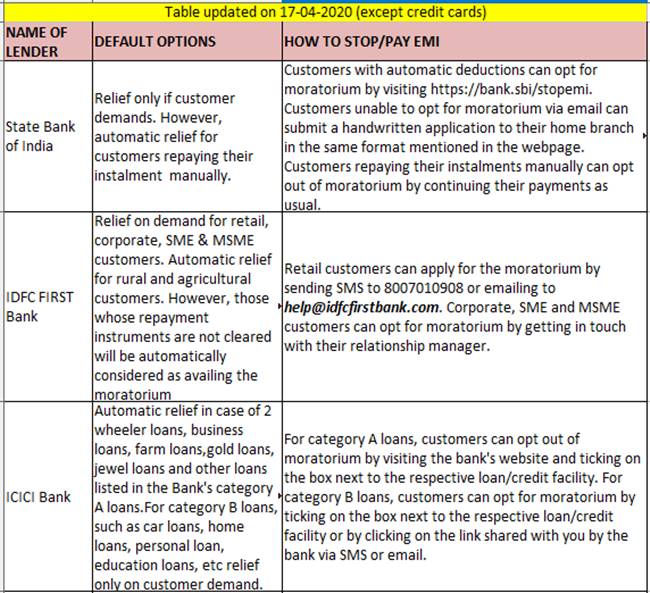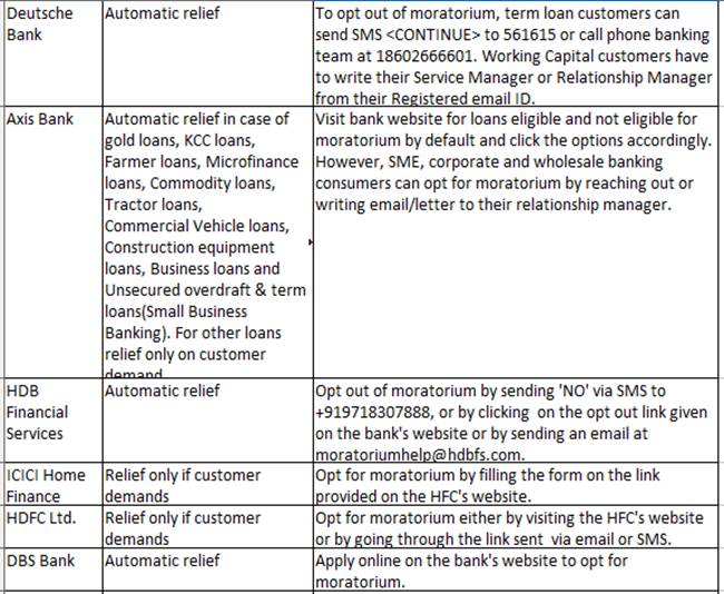 Some banks like Deutsche Bank and DBS Bank are giving automatic relief to their borrowers.