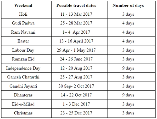“Weekend travel has laid roots in Indian travel market so well that more and more people like to indulge in multiple short breaks throughout the year. This helps them to break monotony of their routine and makes them feel rejuvenated,” said Anand.