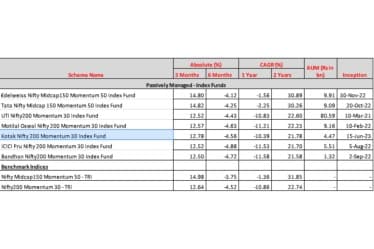 Keep in mind, most schemes have been recently launched. Among the actively managed momentum mutual funds, none of them have completed even two years. Hence, we haven’t considered them.