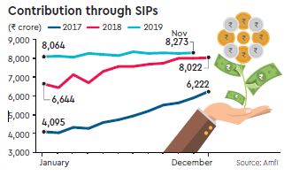 Even as overall inflows into the equity schemes slowed-down in the last few months, investors continue to repose faith in SIPs. The data from Association of Mutual Funds in India (Amfi) shows that in the period between January-November equity funds have seen inflows of Rs 71,926.87 crore. While in calendar year 2018, mutual funds had seen inflows of Rs 1.27 lakh crore. Market participants say that slowdown in equity flows is due to the volatility in markets and concentrated rally in equity markets.