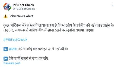 After checking the facts, the Press Information Bureau (PIB) has recently released its Fake News Alert, sharing a post on its official X handle, that this news is fake and the RBI hasn’t issued any guideline for imposing a penalty on people for having bank accounts in more than one bank. So, “you need to be alert to such fake news!”