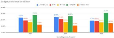 Women homebuyers are increasingly gravitating toward premium properties, with the Rs 1-2 crore segment emerging as the most preferred budget category. With rising financial independence and a greater role in decision-making, their demand for high-value homes has grown significantly, according to Magicbricks Research.
