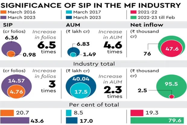 In 2021-22, net fresh inflow via the SIP route, i.e. gross inflows net of redemptions, was 19.3% of fresh inflow in the industry. In 2022-23, till February 2023, net inflow through SIP was almost 80% of the fresh inflows, which is remarkable. The other contributor to this was lump-sum outflows in 2022-23. The equity market, at least the indices, did not do much. Returns from debt funds were muted. This underscores the importance of the discipline imparted by SIP.