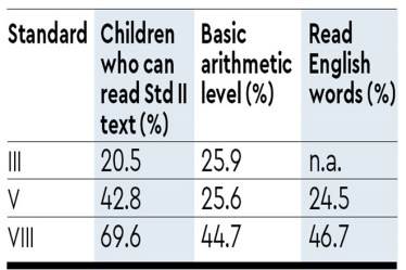 Quality of Education: The Annual Status of Education Report (ASER) is a nationwide household survey that captures, among other things, the learning outcomes of children in rural India. ASER 2022 reached almost all rural districts. Here is a summary of the findings on learning levels in reading, arithmetic and English: