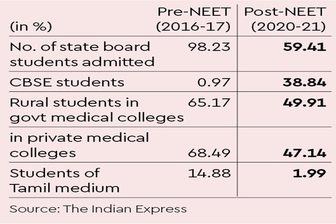 I shall reserve the highly debatable issue of “merit” to another day. Today, I wish to focus on the facts reported by the Justice A K Rajan Committee on the impact of NEET on the admission process in medical colleges in Tamil Nadu: