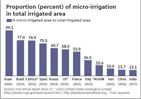 Then, there is the issue of investments, especially in water. Pradhan Mantri Krishi Sinchayee Yojana is already mandated to achieve completion of 99 irrigation projects by 2019, which will bring an additional 76 lakh ha under irrigation. NABARD, with the Rs 40,000 crore Long-Term Irrigation Fund is to help states in completing these projects. If the government can complete these as planned, it would be a commendable achievement. But open canal system with flood irrigation doesn’t have a high water-use efficiency. It is time accord micro-irrigation (drip and sprinklers) a higher priority to achieve the objective of ‘more crop per drop’. Israel and the US may be good examples to follow. Israel has highest proportion (99%) of its irrigated area under micro-irrigation while the US has the largest absolute area (15 m ha) under micro-irrigation.