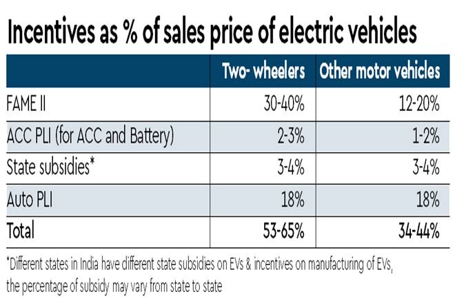 The quantum of benefit after this scheme would range from 34% to 65% of the sale price of EVs. Hence, the PLI scheme is likely to provide the required impetus to EVs.