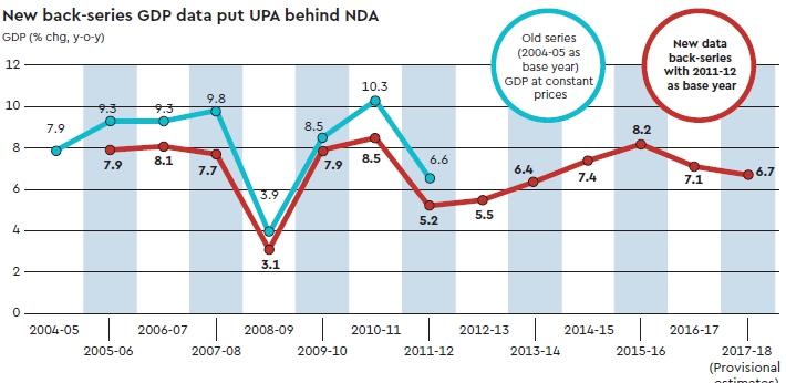 The back-series has generated a political storm five months before the nation goes to polls to elect a new government. The data show that the current government has performed much better than the UPA government led by Manmohan Singh.