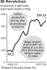 The government’s stance never made sense since, with 95% of the cotton crop using Bt technology, it was obvious farmers thought the cost-benefit was favourable (see graphic). Indeed, such is the farmers’ faith in Bollgard-II, they are happily paying 1.7 times the price for illegal copies of an advanced version of it—the product, Bollgard-II RRF (Roundup Ready Flex) was developed by Monsanto, but illegal knock-offs of it are being sold since, faced with the government’s attitude, Monsanto never introduced it in the Indian market. Around 8-10% of India’s cotton acreage is based on the illegal knock-offs. The crux of the controversy over whether the Monsanto technology can be patented centres around Section 3(j) of the Patents Act—Section 3 deals with what are not inventions and cannot be patented and 3(j) talks of “plants and animals in whole or any part thereof other than micro-organisms but including seeds, varieties and species and essentially biological processes for production or propagation of plants and animals”. So, how did the Patent Office, in 2008, give Monsanto a patent if this is in violation of the Patents Act? Indeed, more than 70 other patents have been given for similar products, including “a method of producing a transgenic plant”, “a method to produce a plant tolerant to stress conditions”, “a method for increasing seed yield and/or biomass under normal growth conditions”, etc.