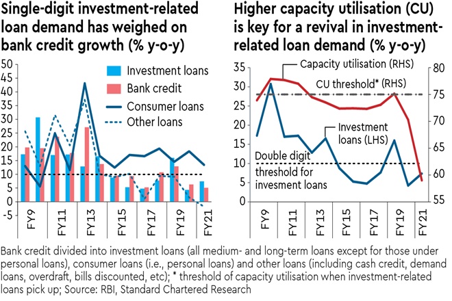 In a nutshell, while the improved balance sheets of corporates and banks, along with higher inflation, are constructive developments for credit growth, it is insufficient for a capex and related loan revival. In our view, lagging demand is the biggest factor holding back capex and sustained double-digit credit growth.
