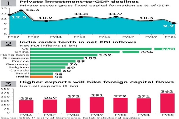 To push up the investment rate, India must see significant participation from the private sector, a point underlined by finance minister Nirmala Sitharaman when she asked Indian businesses what was stopping them from investing in the economy at a time when foreign direct investors are confident about India.