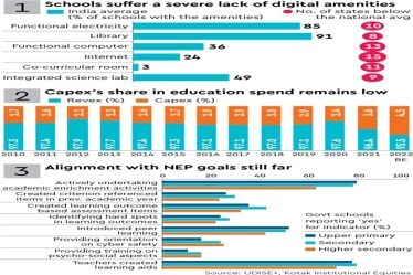 A recent report from Kotak Institutional Securities, analysing UDISE+ data, shows major deficiencies of digital amenities in government-funded schools.