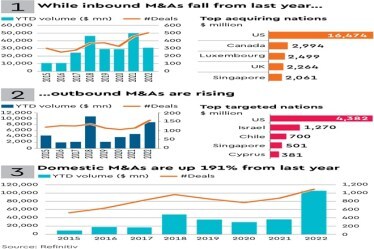 In the nine months so far this year, domestic mergers and acquisition (M&As) touched record levels of $105 billion, up 191% from the same period last year. The bulk of this, though, came from the $60-billion HDFC-HDFC Bank merger.