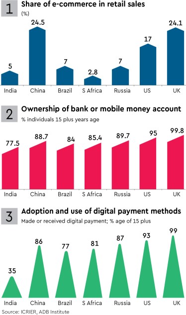 There is wide variation in the degree of e-retail penetration among the G-20 countries, with South Korea leading the pack followed by China. India has one of the lowest shares.