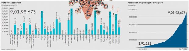 Vaccines are crucial for slowing down the spread. Till April 8, around 95 million vaccine doses have been