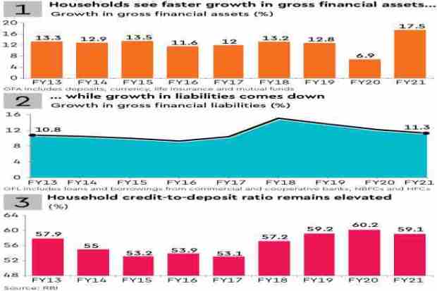 Financial assets of households grew at 17.5% in FY21, at a faster kip than their financial liabilities, which grew at 11.3%.