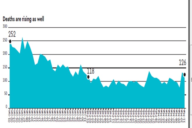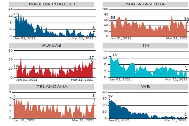 Kerala, Punjab and Maharashtra are the only three states to register double-digit deaths. India needs to ramp up testing if it does not wish to go the US or Europe way. While the country was conducting nearly 11 lakh daily tests in October, it has now been averaging just 7.4 lakh tests daily.