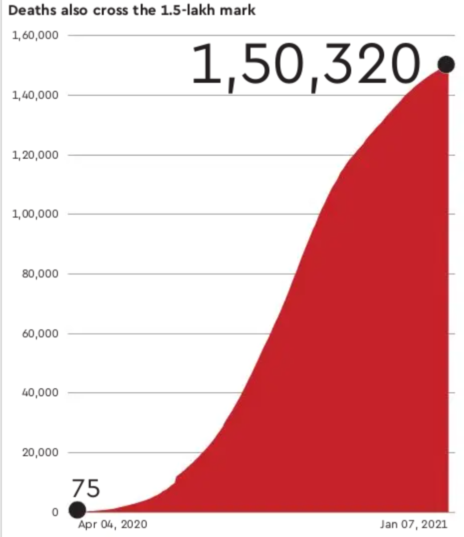 With vaccine distribution soon to start—the Union health ministry plans to administer vaccines to 30 crore people in Phase one by July—deaths are expected to reduce further.