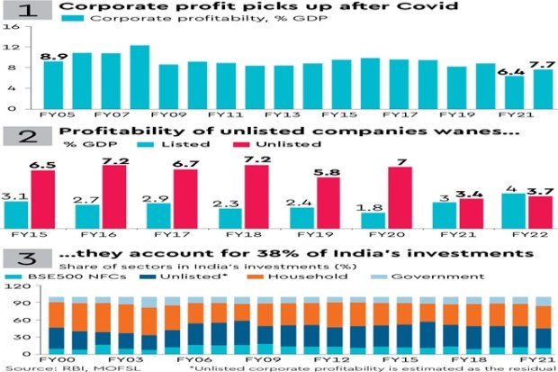 The profitability of the unlisted corporate sector, which accounts for 3X the total investments of listed companies, halved during the Covid period.