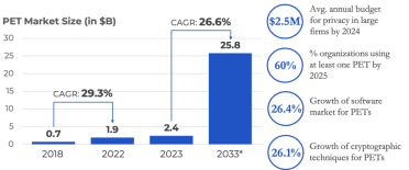 Some of the prominent PETs include confidential computing (hardware-based secure and physically isolated enclave to execute computations) and Multi-Party Computation (allowing joint computation of some function between a set of parties without exposing it to other participants).