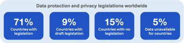 Countries across the globe have shown a growing interest in establishing regulations that help create certain standards for data protection. Currently, at least 80% of the countries in the world have some sort of legislation implemented, or drafted, for data protection and privacy.