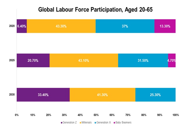 If we look at global workforce trends, multiple research studies have estimated the composition of workforce in 2020 and beyond, and most of them predict that Gen Z (born between 1997 and 2012) and Gen Y (born between 1981 and 1996) would together constitute more that 60% of the working population (and beyond) by 2025.