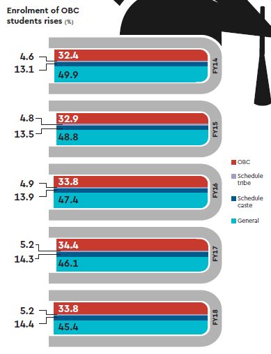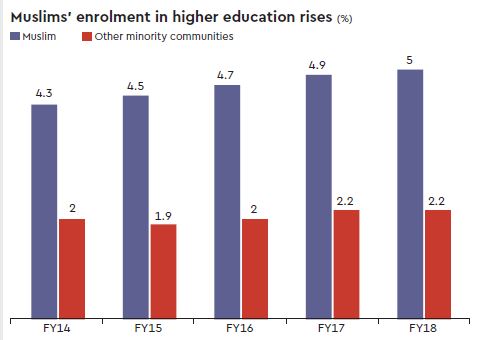 Enrolment of Muslims and women has increased in higher education, signalling future upliftment of these socio-economically vulnerable groups. Enrolment of women has shown a 45% increase to 17.4 million in 2017-18 from 12 million in 2010-11, and Muslims’ enrolment increased by 37% during the same period, data from the All India Survey on Higher Education for 2017-18 show. Interestingly, even enrolment of students from Other Backward Classes has grown as well.