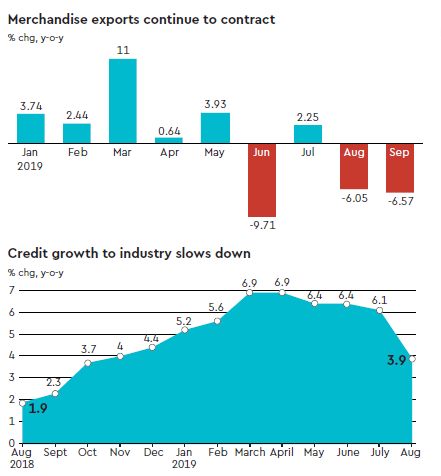 Various indicators show that the economic slowdown is deeper than expected, and a sustained recovery may take several more quarters unless demand revives. Industrial production contracted 1.1% in August, the worst performance in almost seven years. Demand for consumer goods in rural India has recorded its worst performance in the last seven years and car sales have collapsed for 11 months in a row.