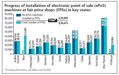 For rolling out the one nation, one ration card move pan-India, all PDS shops should install ePoS machines and all ration cards have to be seeded with Aadhaar numbers. Thus, much depends on the two states of Bihar and West Bengal, where 1.54 crore and 5.62 crore individual ration cards, respectively, have to be seeded with Aadhar cards, and ePoS machines installed at all the FPSs, over the next few months.
