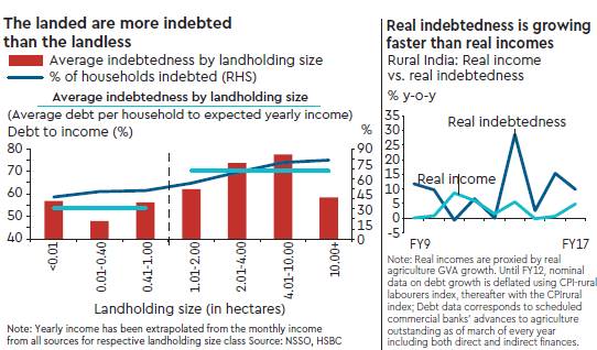 On the other hand, the landed, who pay these wages and are more directly dependent on income from cultivation, have taken the brunt of falling food prices. Their realisation from selling the produce has been lower than expected. They are also more indebted to formal sector lending, explaining the clamour for farm loan waivers.