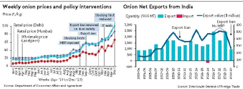 But, let us first recount the journey of onion prices over the last few months. When retail prices touched `50-60/kg in September-October, the government imposed a minimum export price (MEP), put stocking limits on retailers and wholesalers, and then, finally, banned onion exports. However, when these measures failed to tame onion prices, even income tax raids were conducted on traders (see graphic). This only shows bankruptcy of ideas in policymaking. Such a situation has arisen almost every alternate year, but we have refused to learn. Then finance minister, late Arun Jaitley, had announced and allocated `500 crore for “Operation Green” in the 2018 Union Budget precisely to stabilise the prices of tomatoes, onions, and potatoes (TOP). The scheme was to be implemented by the ministry of food processing, but their website shows that the money has still not been released.