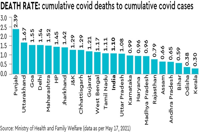 It is now time for some quick action to contain the spread of virus in villages. The PM has already warned about this. In rural areas, farmers are the key stakeholders. Punjab stands tall amongst farming community, having played a lead role in the Green Revolution. But, do we know that Punjab tops the list of Covid-19 death rates, followed by Uttarakhand, Goa, Delhi, Maharashtra, and so on? (see graphic).
