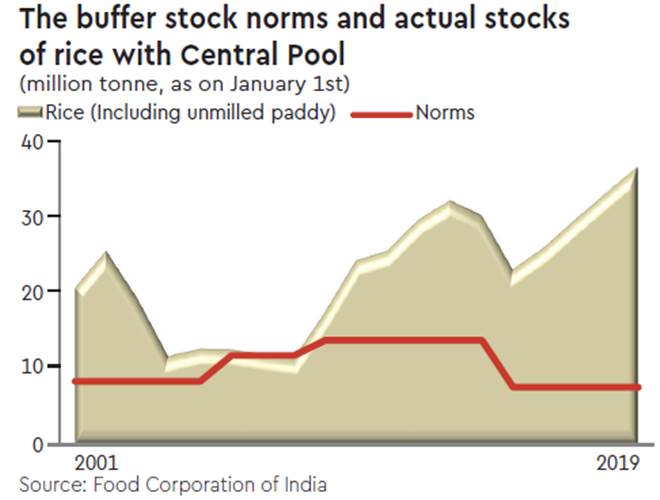 This is just the right time to make this switch as the government’s rice stocks are way above the buffer stock norms (see graphic). This reflects massive inefficiency in grain management. In fact, the Centre should announce that it will not procure more than, say, 50% of the production of common paddy from the blocks that are over-exploited. Further, it will not give to the state procurement agencies more than 4% as commission, mandi fee, or any cess, etc, for procuring on behalf of FCI.