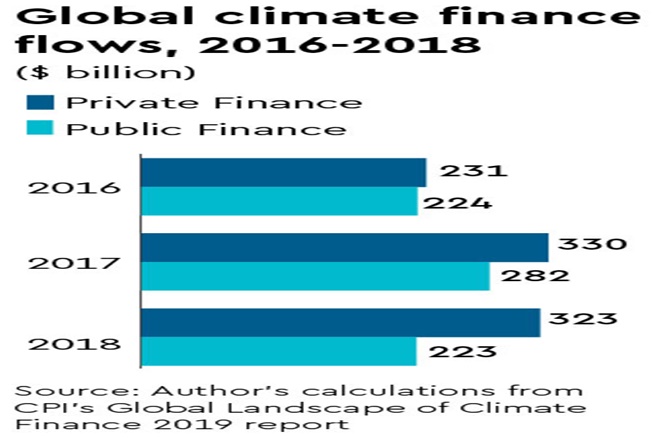 The global energy infrastructure is still being majorly funded by public finance, but given the scale of projected investments, it becomes crucial for countries to engage greater private capital. Further, decreased government revenues and increased welfare spending post-Covid-19 will reduce the availability of capital for such projects. As per the Climate Policy Initiative, global climate finance flows were $546 billion in 2018, decreasing from $612 billion in 2017. Average flows during 2017 and 2018 ($579 billion) were majorly mobilised from private sources ($326 billion), while the remaining was publicly funded.
